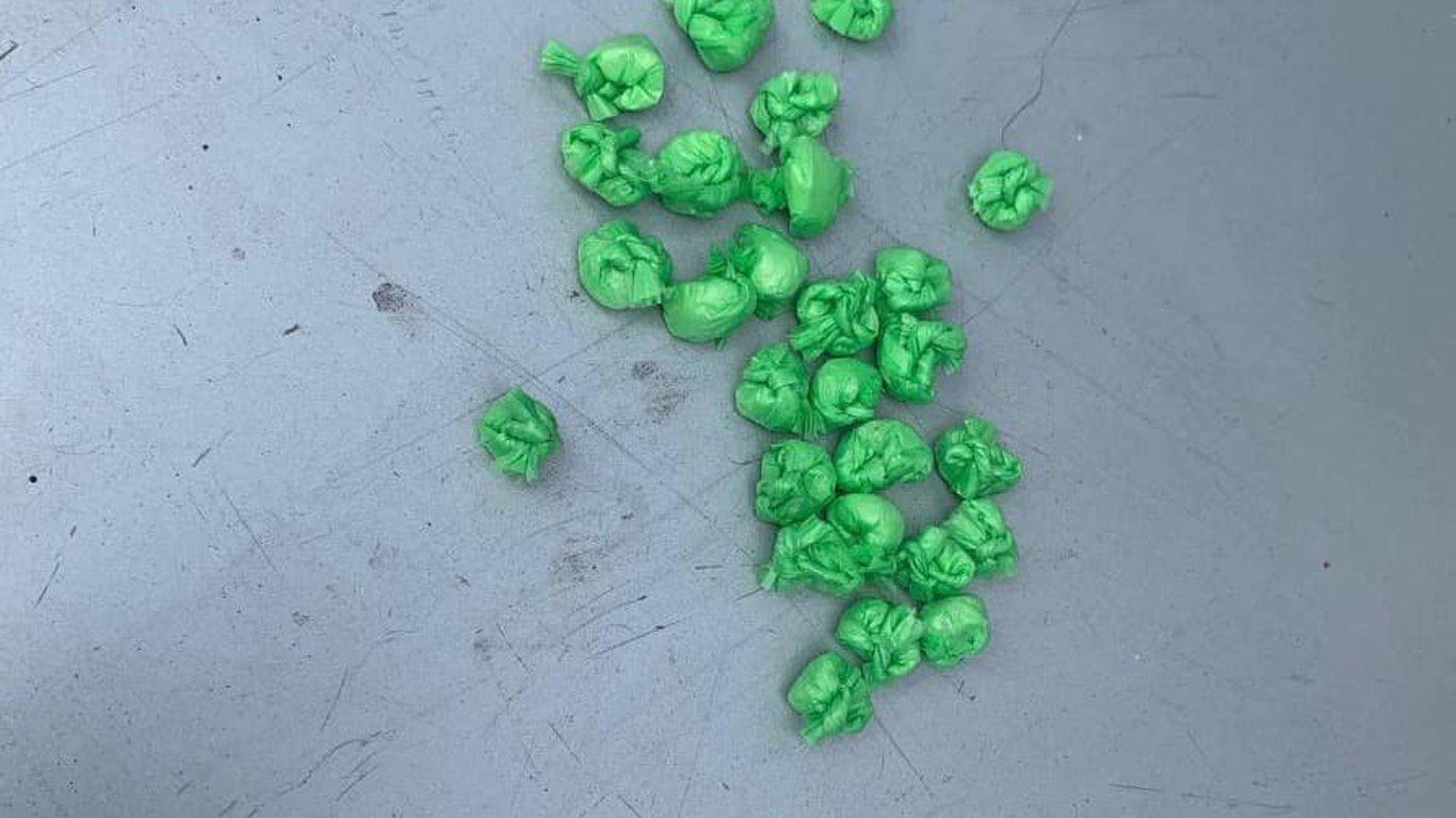 В результаті перевірки чоловік вкрай нервував. У нього патрульні знайшли 20 згортків з невідомою речовиною, швидше за все наркотичного походження.