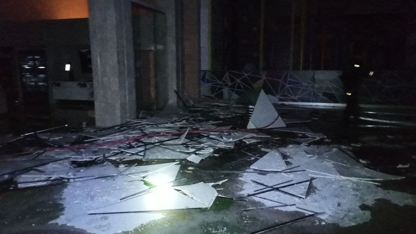 "О 22:17 противник важкою системою залпового вогню "Смерч" пошкодив купол ТРЦ "Нікольський" з наступним обвалом усередині. На місці події працюють співробітники ДСНС України", – уточнив Синєгубов.