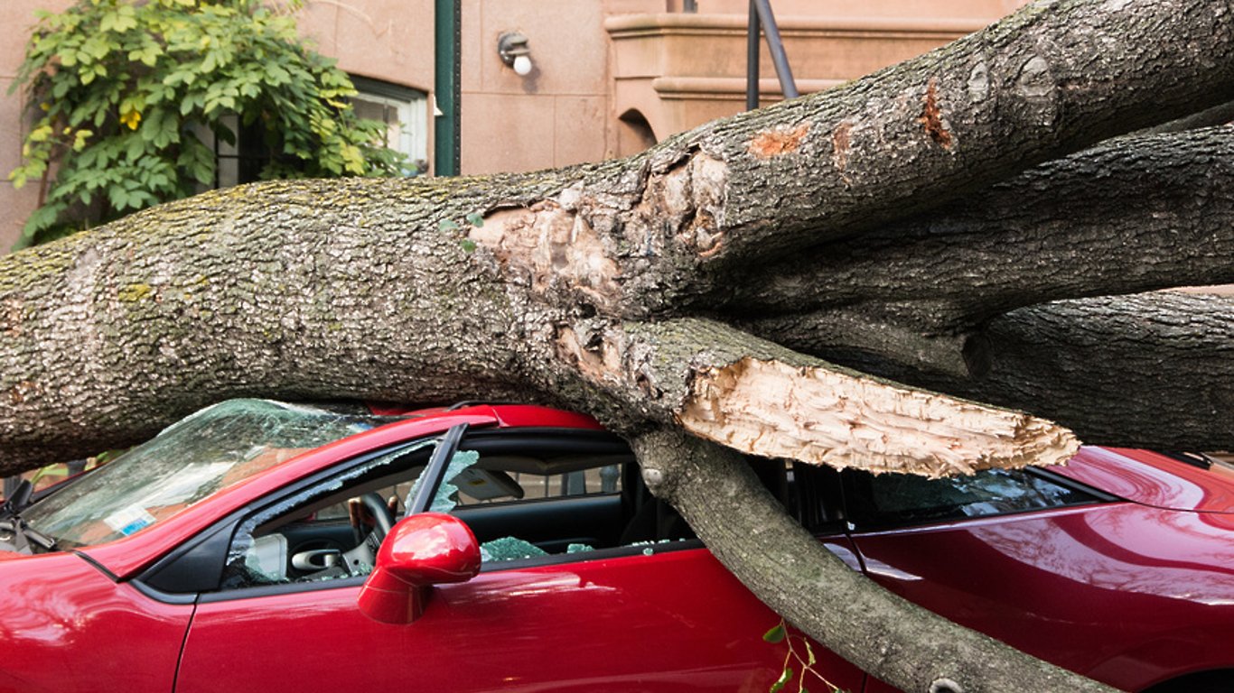 Дерево впало на декілька авто у Харкові. Кадри з місця події