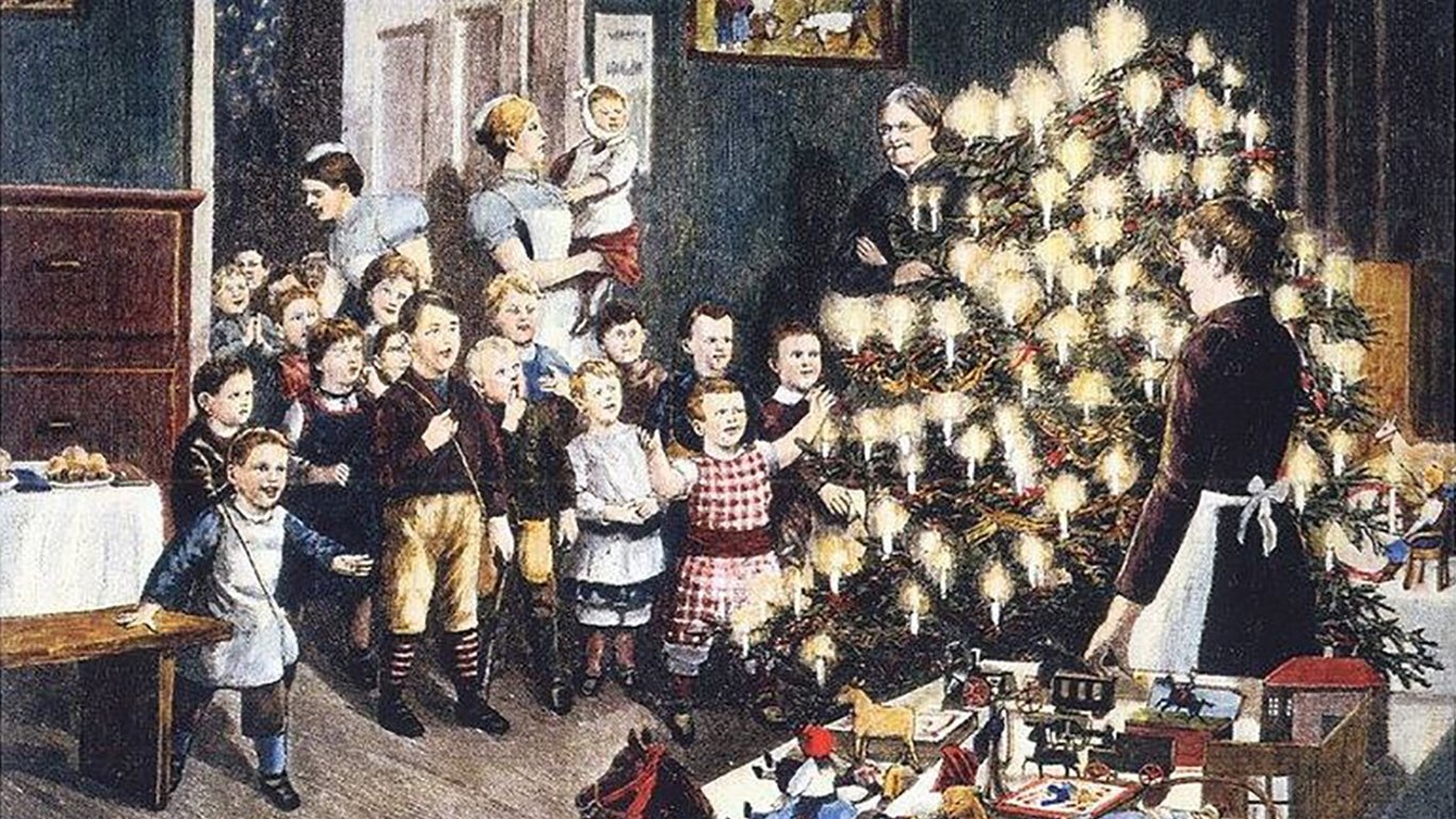 Увечері перед Новим роком для дітей влаштовувалася ялинка. Оскільки іграшок тоді було мало, то найчастіше загортали у фольгу або кольоровий папір яблука, горіхи та пряники. Наряджали ялинку 30 грудня ввечері, коли маленькі діти вже спали. Крім іграшок на ялинці були різні свічки. Серед дворян на початку XIX століття помітно виділяються свята 4-х братів Шидловських. Так в 1804 році Григорій Шидловський на дитячу ялинку витратив 650 рублів сріблом, суму, яка порівнянна з доходом деяких маєтків за рік. У 30-40-ті роки дворянські сім'ї Харкова Алфьорові, Савичі, Хорватови, Шабельські та Трубецькі змагалися в пишності дитячих свят.