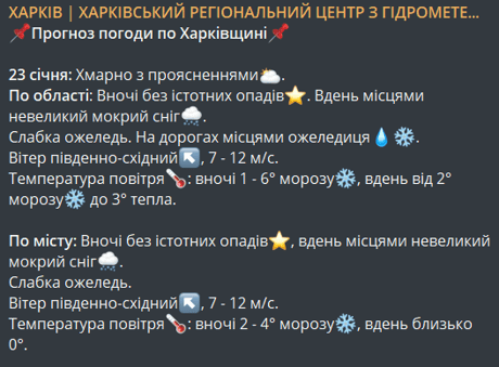 Погода у Харкові 23 січня