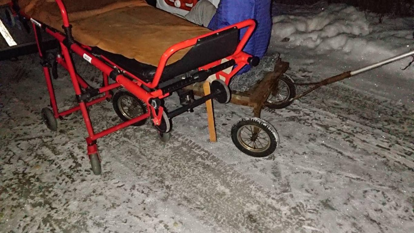 Через засніжену дорогу медики тягли пацієнта на візку