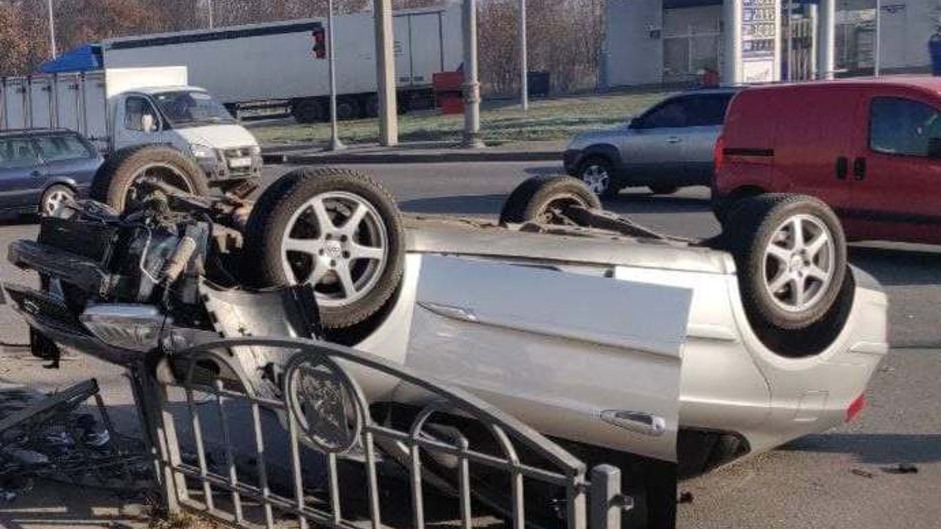 18 листопада у Харкові сталася чергова ДТП. На перехресті не розминулися дві автівки. Від удару одна з них перевернулася на дах.