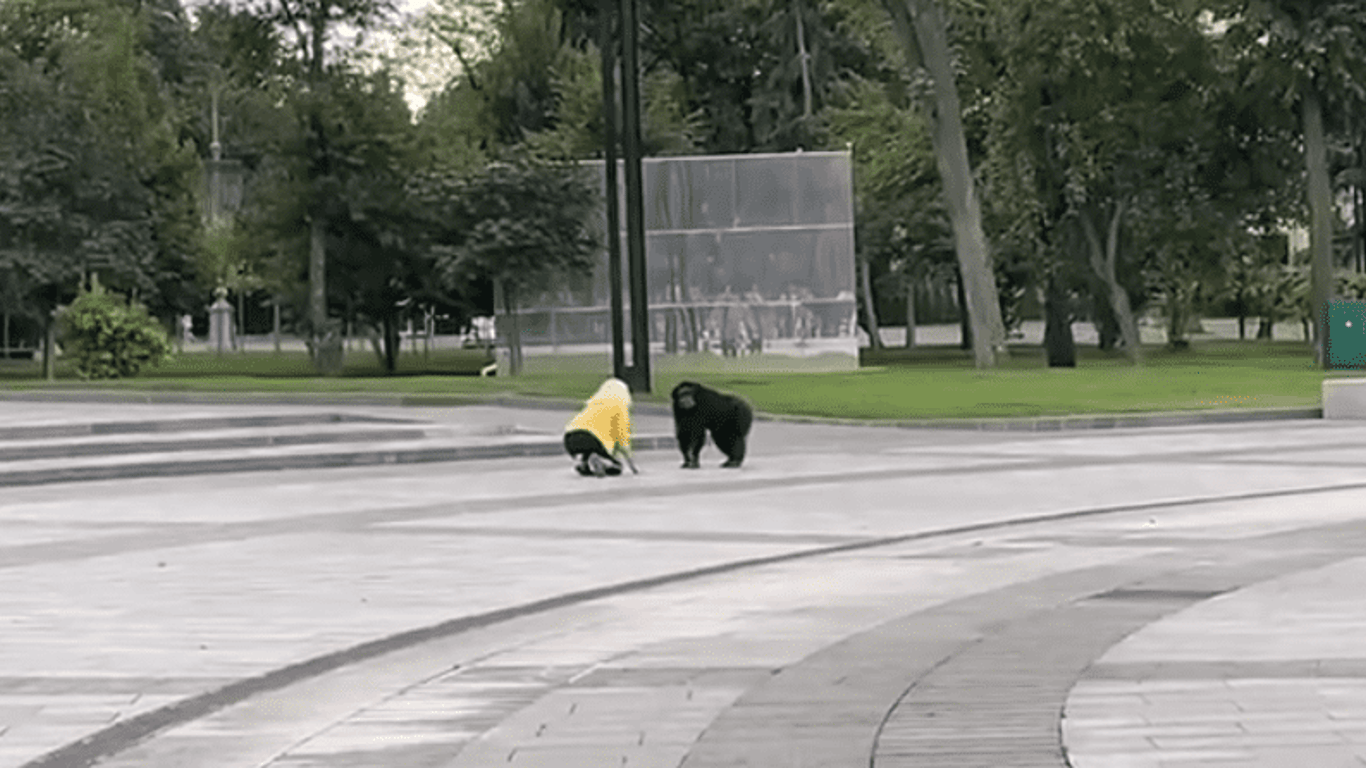 Харьковом бегает сбежавшая из зоопарка обезьяна: ее уговаривают вернуться (видео)