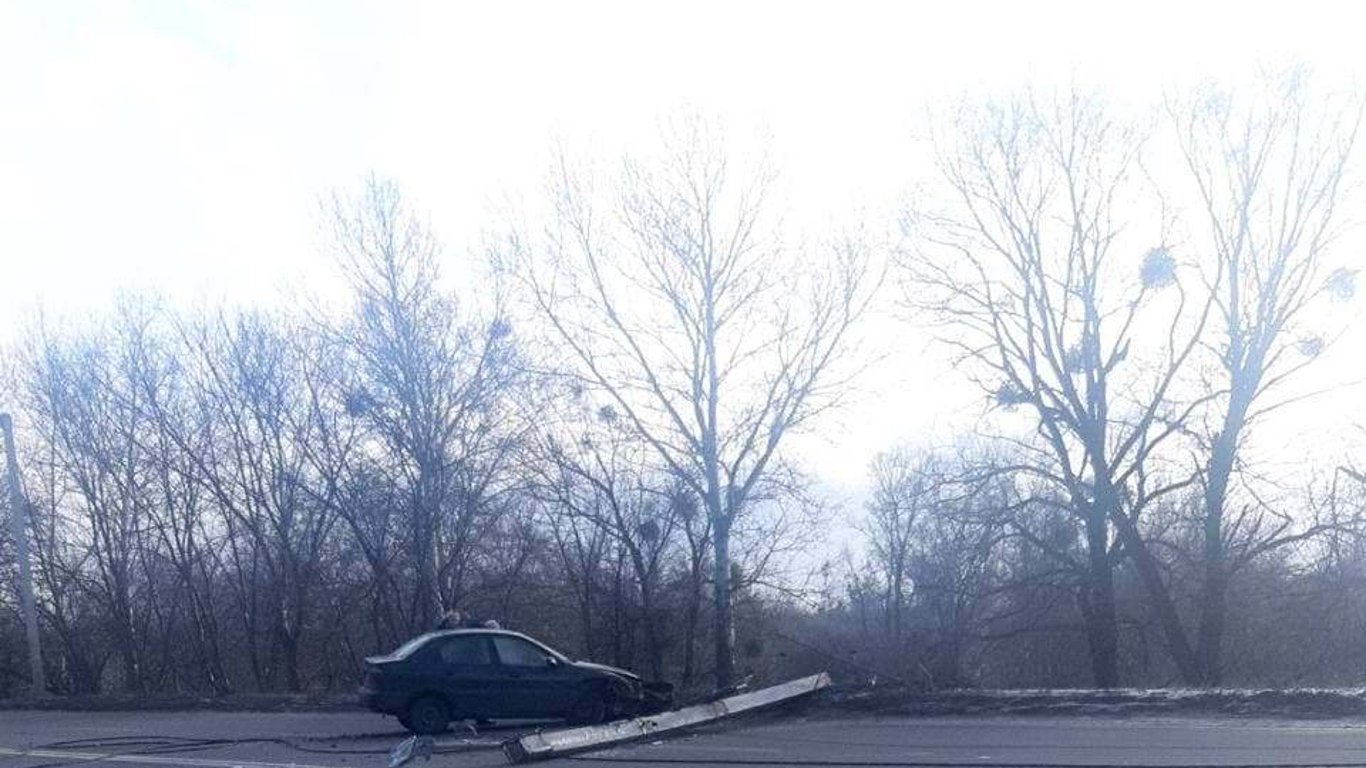 Возле Харькова снова произошла авария. Водитель легковушки, не справившись с управлением снес столб.