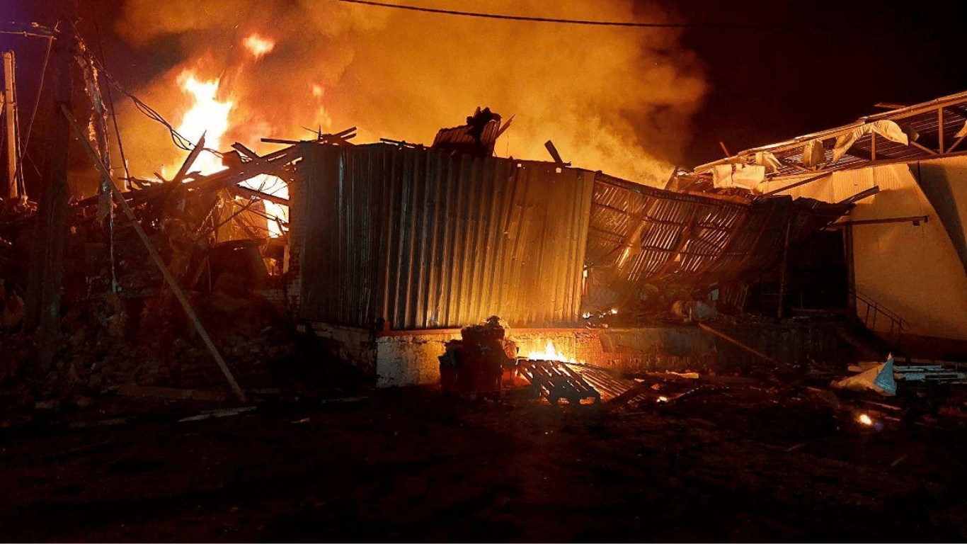Впоследствии Олег Синегубов уточнил, что по территории мясокомбината попали четыре БпЛА "Шахед". Там возник масштабный пожар, повреждены производственные цеха и гаражи.