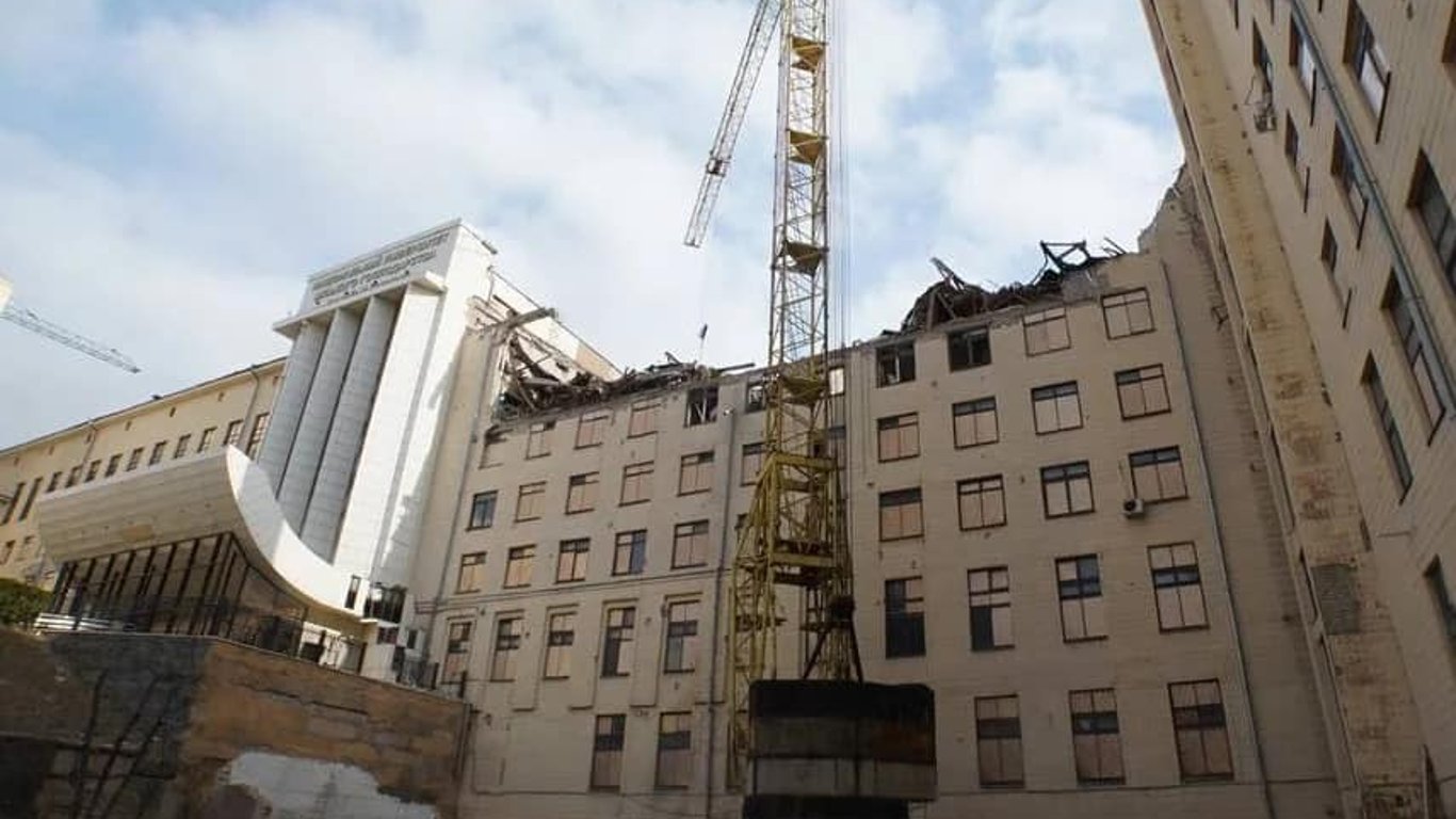 В Харьковском национальном университете городского хозяйства имени Бекетова начали демонтаж разрушенных этажей здания вуза.