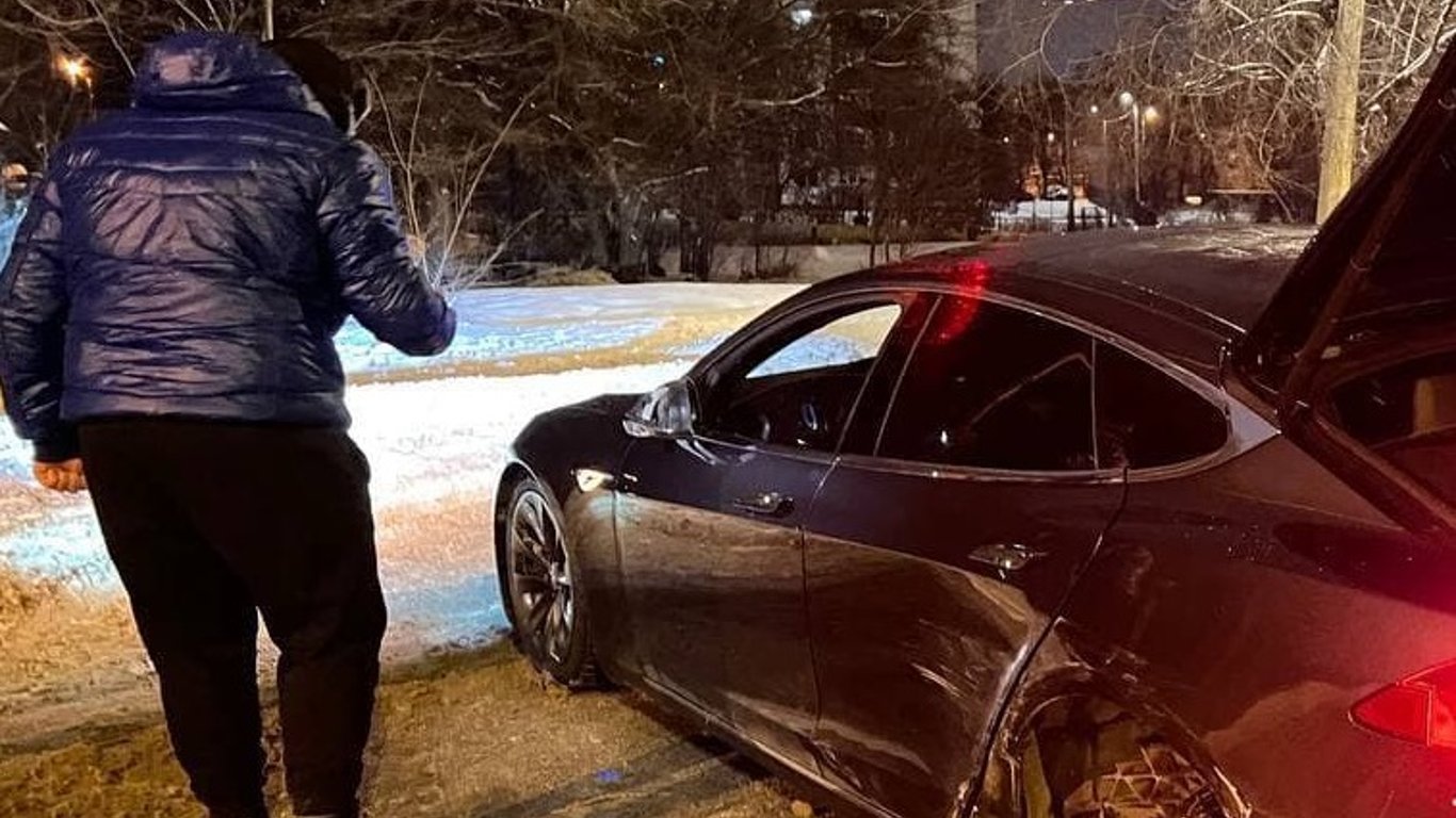 В Харькове в результате ДТП с пьяным водителем у автомобиля Tesla оторвалось колесо