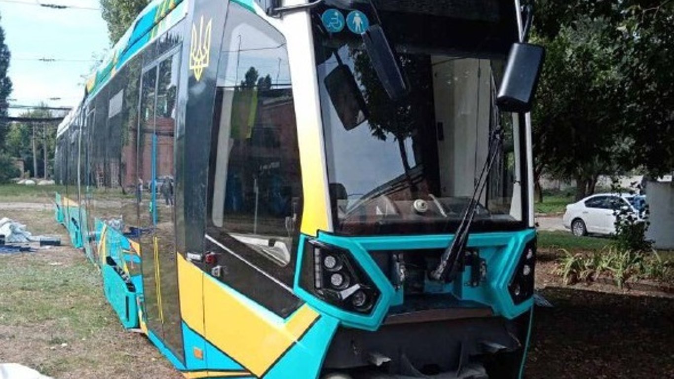 Як видно на фото, новенький трамвай розфарбований в кольори українського прапора. Також на вагоні є намальований тризуб. Судячи із зображення, до Харкова прибув низькопідлоговий трамвайний вагон моделі "Метелиця". Наразі він знаходиться у Салтівському депо.
