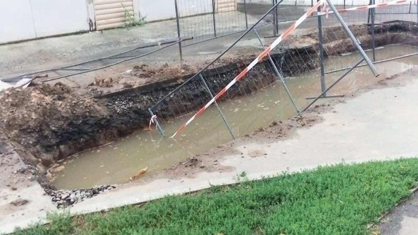 Сьогодні, 25 серпня, в Харкові на вулиці Целіноградській, 54, стався прорив труби. Затопило розриту дорогу.
